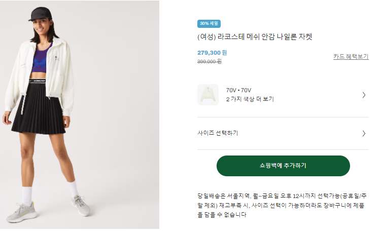 2) 라코스테 홈페이지로 돌아와 맨 위 장바구니 모양을 클릭하고