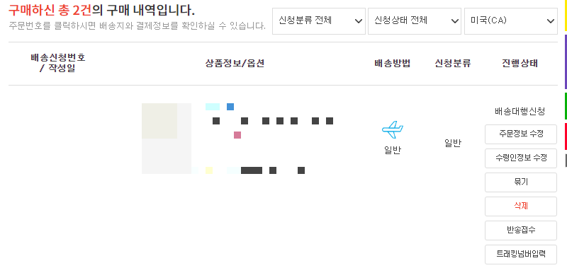 1. 제품 구매 미국 판매자가 발송 미국 내 배대지에서 수령