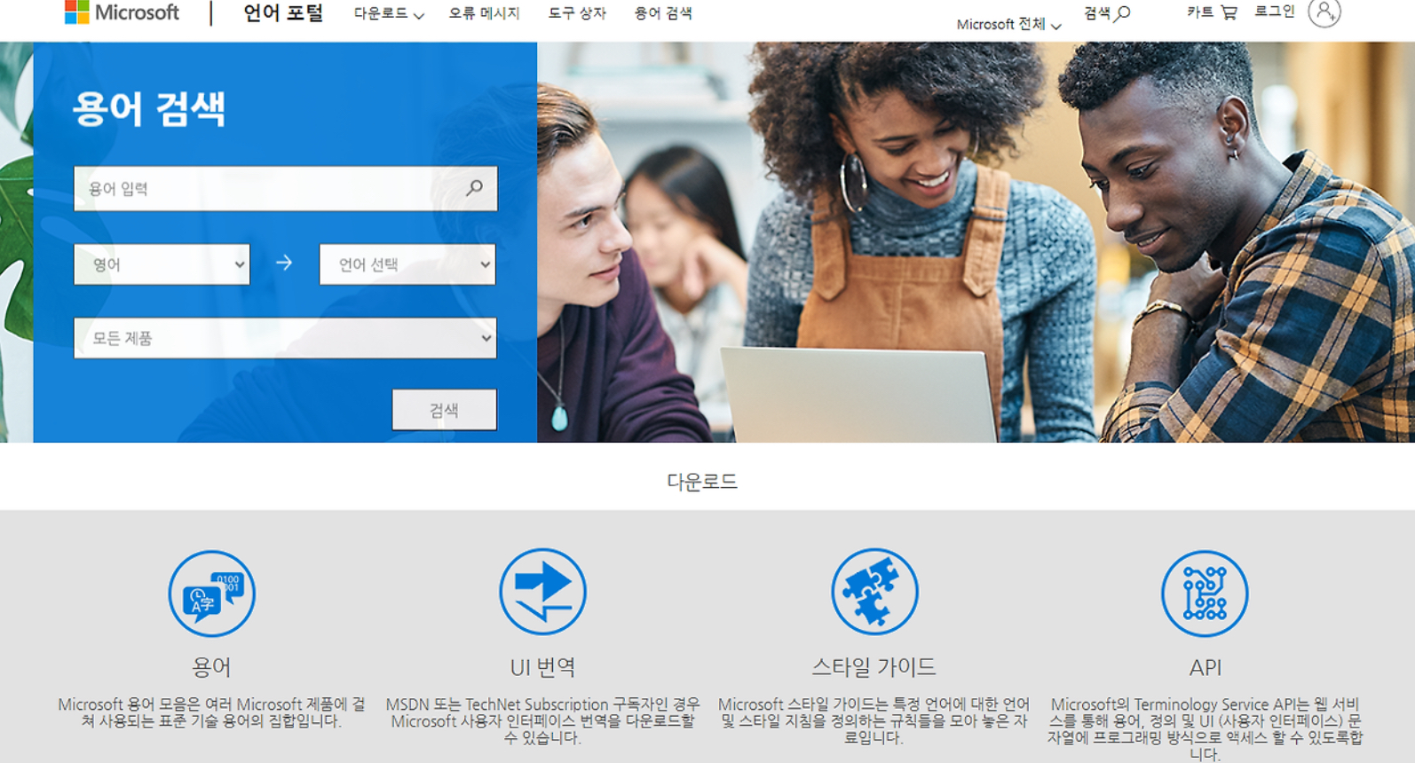 기존의 언어 포털은 상당히 사용자 친화적이었는데요, 현재 제공되는 Microsoft Terminology Search 사이트는 그보다는 사용하기가 까다롭습니다. 아래에 사용 방법을 설명해 드리겠습니다.
